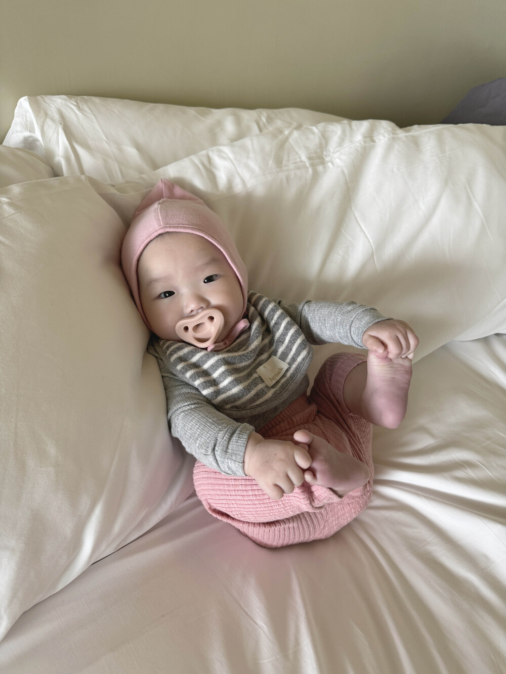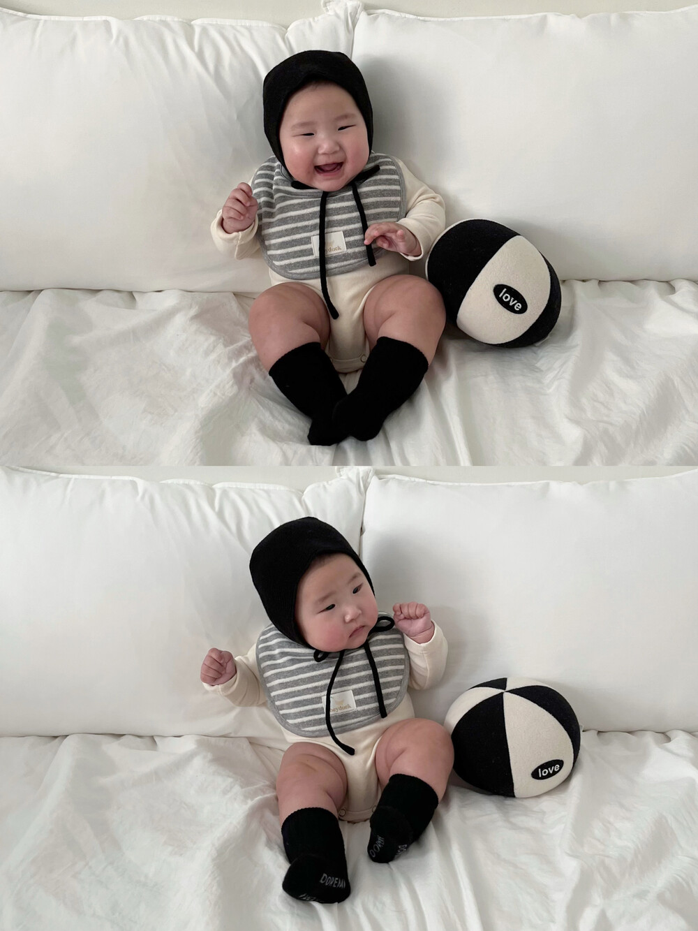 "스트라이프 빕"의 뒷면은 단색으로 되어있어서
