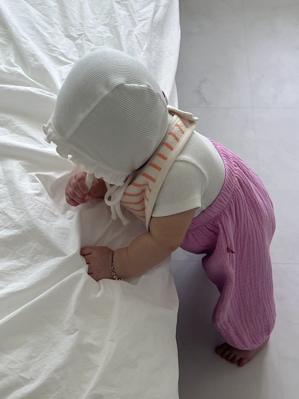 "스트라이프 빕"의 뒷면은 단색으로 되어있어서